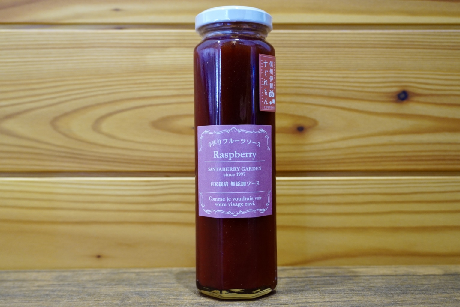 自家農園で収穫したラズベリーを使った手作りのフルーツソース。炭酸で割って作るドリンクが美味