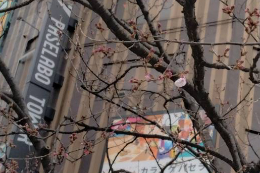 新宿駅東南口広場にある「タカトオコヒガンザクラ」が咲き始めました