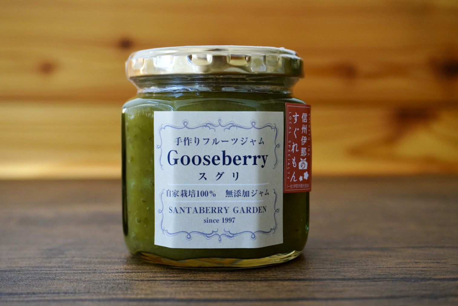 完熟前のスグリの実(自家農園100%)をジャムに加工。ほどよい酸味を生かした珍しいジャムです